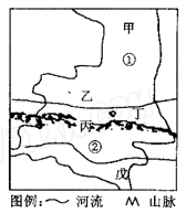 小题2:图中乙为渭河属于黄河水系,戊为汉江,属于长江水系;三门峡位于乙河下游地区,不能对乙河流量进行调节;灾情严重既有自然原因,也有人为原因,人为植被破坏,引起水土流失加重,河床增高,洪涝灾害的灾害加重。所以本题选择D选项。