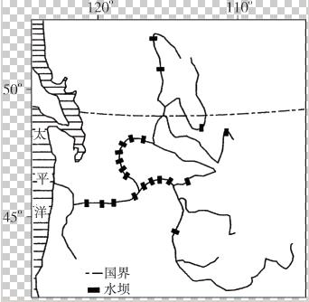 (3)读图2,国界南北河流上大坝数量悬殊,其中水坝较多的国家是_________,其水坝多的原因是______________;国界以北水坝较少的主要原因是_____________________。