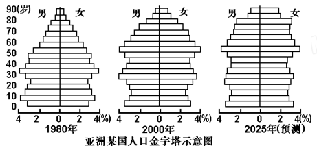 5、单选题 下图反映了亚洲某国人口增长与构成的变化及其发展趋势,回答下列各题。