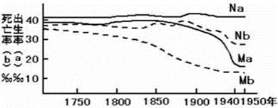 1、单选题 图为“M、N两国一定时期内出生率和死亡率曲线图”,据图回答下列题目。