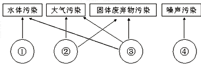 A.食品厂、木材厂 B.自行车厂、电视机厂 C.钢铁厂、纺织厂 D.汽车厂、飞机制造厂 2、单选题 下图是“有关工业与其污染”示意图,正确的排序是? 3、综合题 读下表,回答问题。