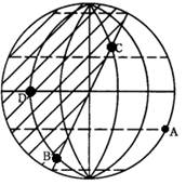 5、综合题 读图(阴影部分为夜半球),回答下列问题:(10分)