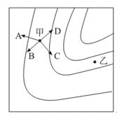 小题2:甲的风向是建立在水平气压梯度力的基础上考虑地转偏向力,符合的是B,南半球向左偏。