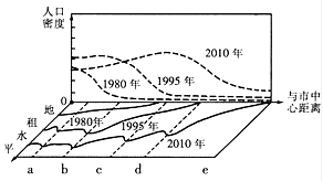 1.2010年,a、b、c、d四处的地租均高于其邻近地区,最可能是因为当地2.2010年,e处最可能是