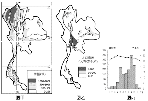 材料三:曼谷气象资料(图丙)。