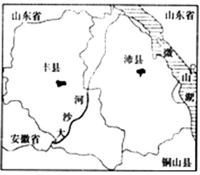 4、多选题 江苏省徐州市丰县位于江苏省西北部(下图)。丰县利用黄河故道引长江水修筑了大沙河水库,并在大沙河沿岸种植苹果,使原先的“风起三尺沙,黄土埋庄稼”的荒滩成为江苏省重要的水果基地。根据以上资料,完成1~2题。