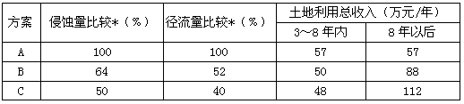 4、单选题 根据土地利用结构调整的需要,科研人员对某生态脆弱区的农业土地利用拟定了三种方案。