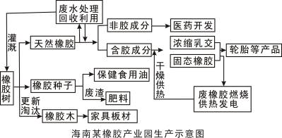 (3)下图为海南某橡胶产业园生产示意图,据此说明该天然橡胶产业园生产经营的主要优势。(6分)