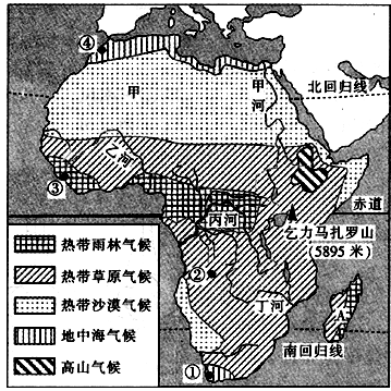 (2)读图可知,丙河流位于赤道附近,应该为刚果河,为热带雨林气候区,降水丰富,河流径流量大。