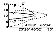 4、单选题 图为北半球冬至日时,地球上四个地点的太阳高度日变化曲线.四地中可能位于赤道的是