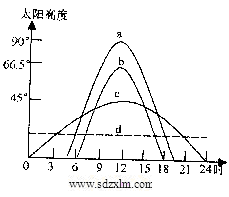 4、单选题 右图中四曲线分别表示A、B、C、D四地某日(同一天)太阳高度的变化,据图判断下列小题。