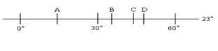 2、单选题 下图是世界地图的一段纬线,A点以西、D点以东是海洋,B和C之间为某一海域,AB、CD为陆地。下列叙述正确的是(?)?
