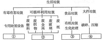 A.大力抽取地下水代替不洁的河水 B.淡化海水或借长江水冲洗净化河水 C.建立大型污水处理工厂,搬迁污染严重的工厂 D.将自来水厂取水口移至黄浦江上游未受污染的河段 4、综合题 (13分)据国家有关部门估计,我国城市每年“生产”的垃圾约有1.5亿吨,目前大多数城市处理垃圾的方法是将垃圾运到城外堆放,填埋或焚烧。据材料回答。 |