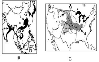 ⑴比较甲、乙两图所示的农业地域类型及其农业生产条件与特点,将答案填写在答题卡的表格中。(每点1分,共10分)