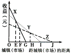 2、在距城镇OJ范围内,为取得最佳综合经济效益,种植这三种农作物的界限应该是