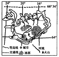 5、单选题 冰岛多次被联合国评为“最宜居国家”。读冰岛地形图,回答1—3题。