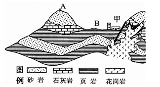 (1)从地质构造看,A是?,该地形成山地的原因是?。