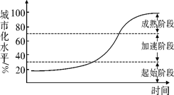 | (1)该流域的气候类型是__________________,河川径流的补给以____________为主。(2分) (2)M江其流域开发的核心问题是______________________的合理开发利用。(1分) (3)2000年该流域城镇化水平的空间差异特点是_____________?_______。根据上表和图2可以推测:进入21世纪,该流域的城镇化进程总体进入__________阶段(填正确项字母)。(2分) A.起始 ? B.加速 ? C.成熟 (4)分析该流域城镇的地理分布特点和成因。(5分) _____________________________________________________________________?