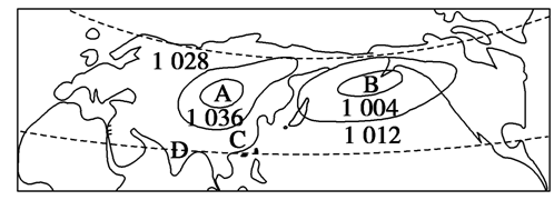 A.北半球的1月 B.北半球的7月 C.南半球的1月 D.南半球的7月 |