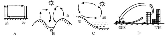 4、单选题 下图中四幅图表示的热力环流中,错误的是