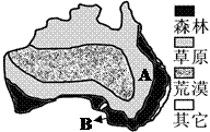 1.下列关于图中A处自然带的说法正确的是2.今年2月,澳大利亚B处发生严重山火,判断其山火发生的气象条件是
