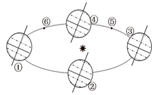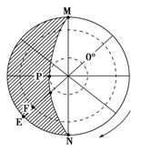 势是?。(4分) (5)当地球位于⑥位置时,太阳直射的位置正处于下图中的? (a、b、c、d) 段。(2分) ![]() (6)在b段过程中地球公转速度的变化为?。(2分) 读地球光照图,回答(7)-(9)小题。 ![]() (7)该图是以_______极点为中心的示意图,E点地方时为___________时。(4分) (8)图中弧MPN为晨昏线,其中MP段是_______线。(2分) (9)此日,P地的正午太阳高度为______________。(2分) 参考答案: 本题解析: 本题难度:一般 5、单选题 该图为“甲、乙、丙、丁四地12月某日昼夜分布示意图”,阴影表示黑夜。回答问题。 |