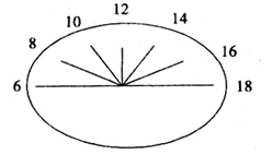 4、单选题 我国某学校地理兴趣小组用立竿测影的方法确定地方时.如图所示在自制刻有钟点时间的网盘中心垂直竖立一根标杆,7条放射线段是在某日每隔2小时记录的标杆阴影方向和长度(图中时间均为地方时).据此回答3—4题.