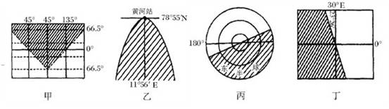 4、单选题  下图中阴影表示黑夜。图中所示季节相同的是