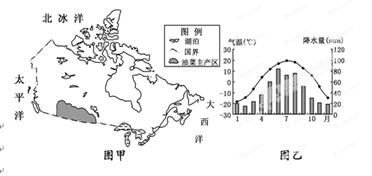 (1)分析加拿大油菜主产区发展油菜生产的有利自然条件。(6分)