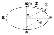 (6)此日,荆州看到太阳升落的视运动轨迹示意图为 ( )
