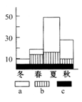 ①b是雨水补给,a是冰雪融水补给 ②a是地下水补给,c是冰雪融水补给 ③a是雨水补给,b是冰雪融水补给 ④c是地下水补给 A.①② B.②③ C.③④ D.①④