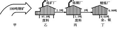 5、单选题 如图为铜矿炼制的原料投入与产出的过程图,据图分析影响乙、丙、丁三工厂的主导区位因素分别是