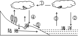 小题3:本题考查水循环。水循环可分为海陆间循环、海上内循环、陆上内循环。水循环的主要环节有:蒸发、降水、水汽输送、地表径流、下渗、地下径流、植物蒸腾等。人类施加影响较大的环节为地表径流。图中⑤环境为地表径流。所以本题选择D选项。