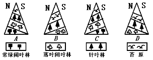 2、单选题 以下四幅山地垂直带谱图中,位于北半球温带山地的是