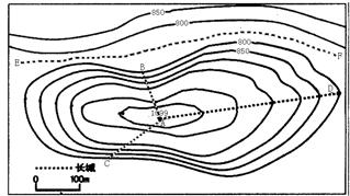 小题3:下图为上图中D处局部等高线(米)图,图中虚线最可能为古长城遗迹的线段及判断理由是?