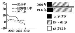 1、与当前我国人口增长模式相符的类型是 [? ] A、① B、② C、③ D、④ 2、关于④类国家人口问题现状的叙述,错误的是 [? ] A、人口老龄化严重 B、青壮年劳动力过剩 C、青壮年劳动力不足,人口素质较高 D、城市人口比重大 4、综合题 国家统计局2006年3月16日公布的全国1%人口抽样调查数据显示,我国总人口达到13.0628亿,与2000年相比,0-14岁人口比重下降了2.62%,65岁及以上人口比重上升了0.73%。结合甲、乙两图回答下列问题。 5、综合题 读“人口再生产类型转变示意图”,回答下列问题(12分) |