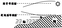 (2)在答题卷的相应图示中用箭头画出近地面风向,并画出高空和近地面等压面。(2分)