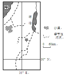 小题1:根据图示的经纬度判断该地区为巴勒斯坦地区,图示海洋为地中海。