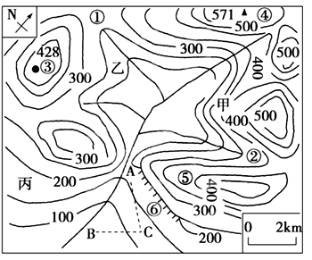 5、单选题 下图为某地区等高线(单位:米)示意图。读图回答题。
