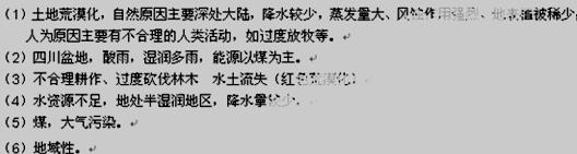 (4)图中各城市生产与生活面临的最大环境资源问题是?,其形成的自然原因是??