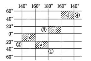 小题2:日界线有二条:一是0时的经线,一是180?.0时的经度是60?W。所以昨天的范围是180?--60?W;今天范围是60?W--180?。