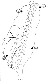 1、该岛是我国重要的海盐基地之一,图中①、②、③、④四地最适合晒盐的是