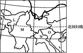 2、单选题 读“我国西南地区边界示意图”,图中的L、M、N、O邻国分别是 ( )