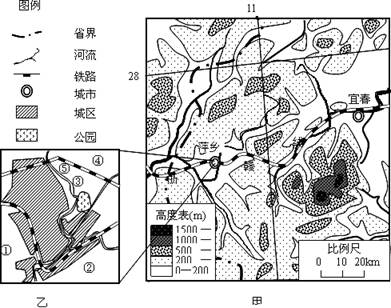 5、单选题 被誉为“江南煤都”的萍乡,已探明煤炭资源可开采量为4.01亿吨,经过100多年大规模机械化开采后,现已累计开采原煤2.8亿吨,剩余可开采储量中近四成为劣质煤,且基本处于地层深部。读萍乡附近地区地图,完成下面试题