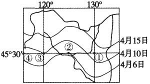 3、单选题 下图表示我国某地季节性积雪融化完毕日期等值线及水系分布状况。读图回答1~3题。