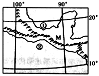 1.图中M山地东、西两坡山麓地带的植被类型2.关于图中海域①、②两地的叙述,正确的是