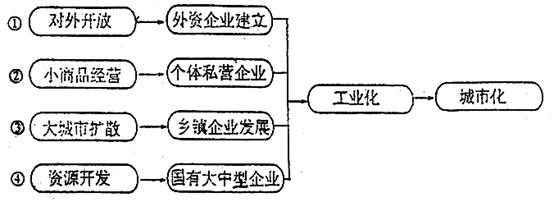 3、单选题 下图中①、②、③、④中,能代表珠三角和东北地区工业化与城市化模式的是