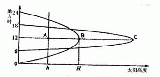 (3)图中横坐标表示太阳高度,纵坐标表示地方时,而C对应的纵坐标,正好是12时。