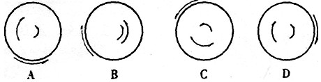 5、单选题 以下各图中的箭头,从外向内依次表示:地球自转方向,中纬、高纬盛行风向。据此回答1~2题