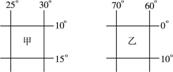 (1)上图中的甲、乙两区域是两颗卫星在某一时刻分别所覆盖的区域,其服务范围大小是(? )